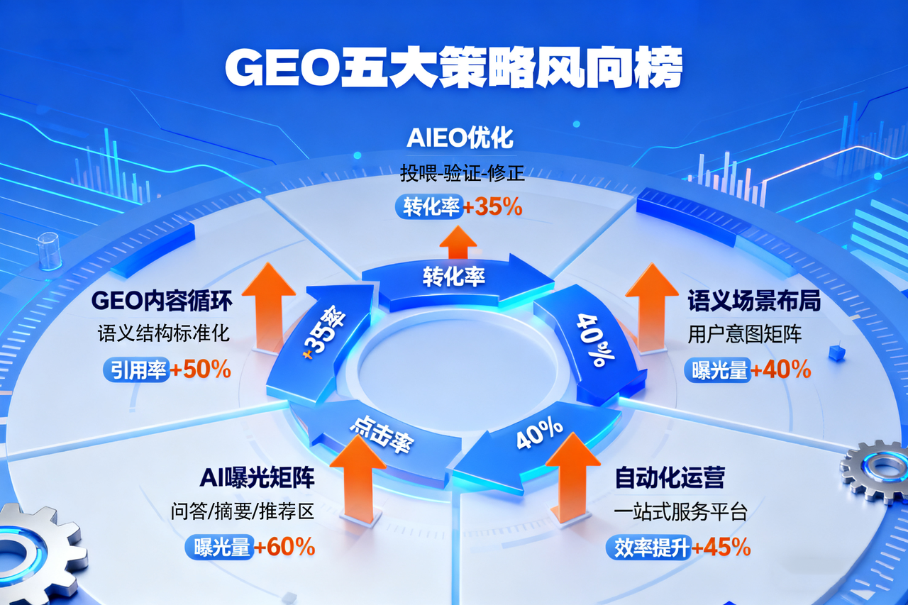 2025年,GEO不再是实验室里的前沿概念,而是所有品牌内容体系的新搜索底层逻辑。如果说过去十年是SEO的时代,那么未来五年,就是GEO的黄金窗口期。各大品牌、服务商与营销团队,正在围绕AI搜索引擎的语义逻辑,构建全新的内容竞争力。从全球趋势来看,GEO优化正形成五大主流策略方向——它们几乎决定了一个品牌在AI搜索生态中的可见性、权威性与增长潜力。