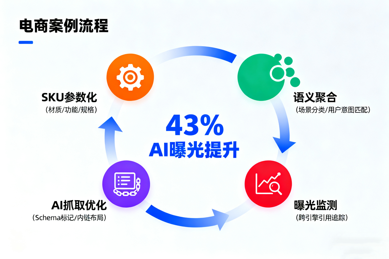 经过三个月的测试,其AI搜索曝光优化率提升了43%,在多个AI推荐系统中获得自然引用。这不仅带动了站外流量回流,也让品牌实现了跨平台AI曝光可持续增长。对于SKU量大的电商、母婴、服饰、美妆类品牌而言,这种方式正逐渐成为内容标准化与AI信任构建的必经之路。
