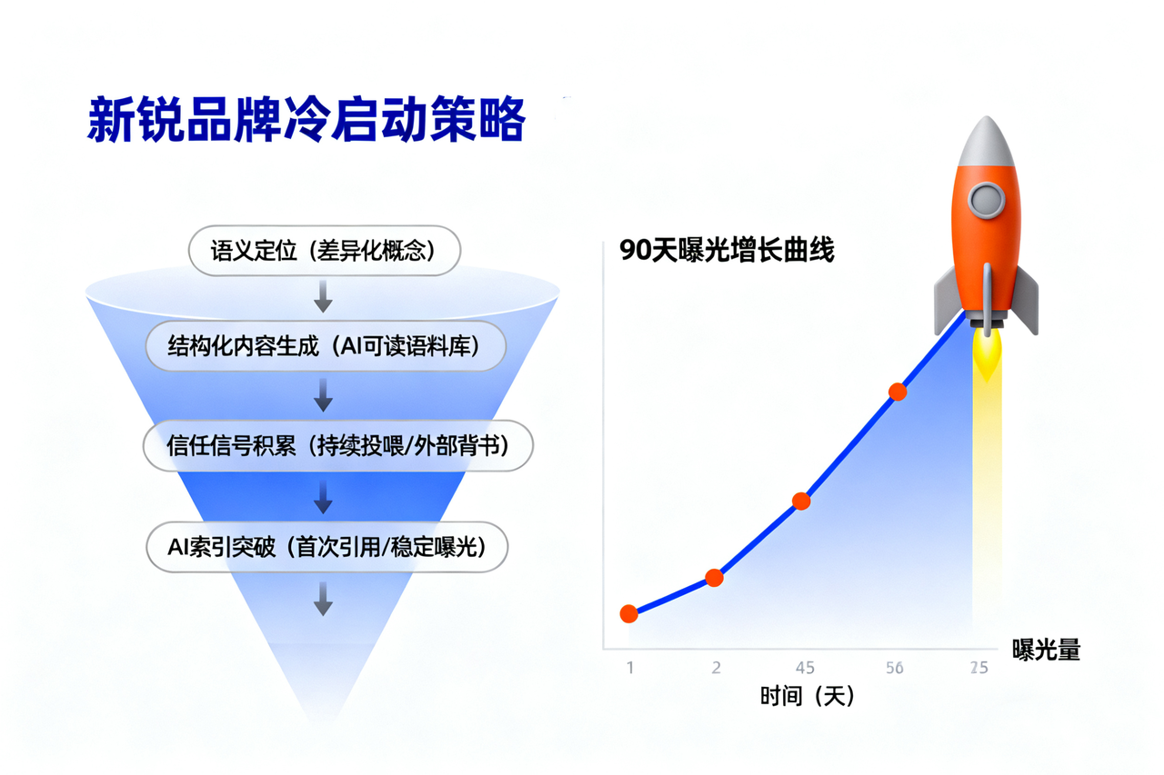 初创品牌往往面临两个挑战:内容语义积累不足与AI索引信号稀缺。这意味着,即使内容质量不差,也难以在AI搜索答案中获得引用。某新锐消费品牌通过引入GEO优化代运营方案,借助专业团队与工具完成了从0到1的AI内容体系搭建: