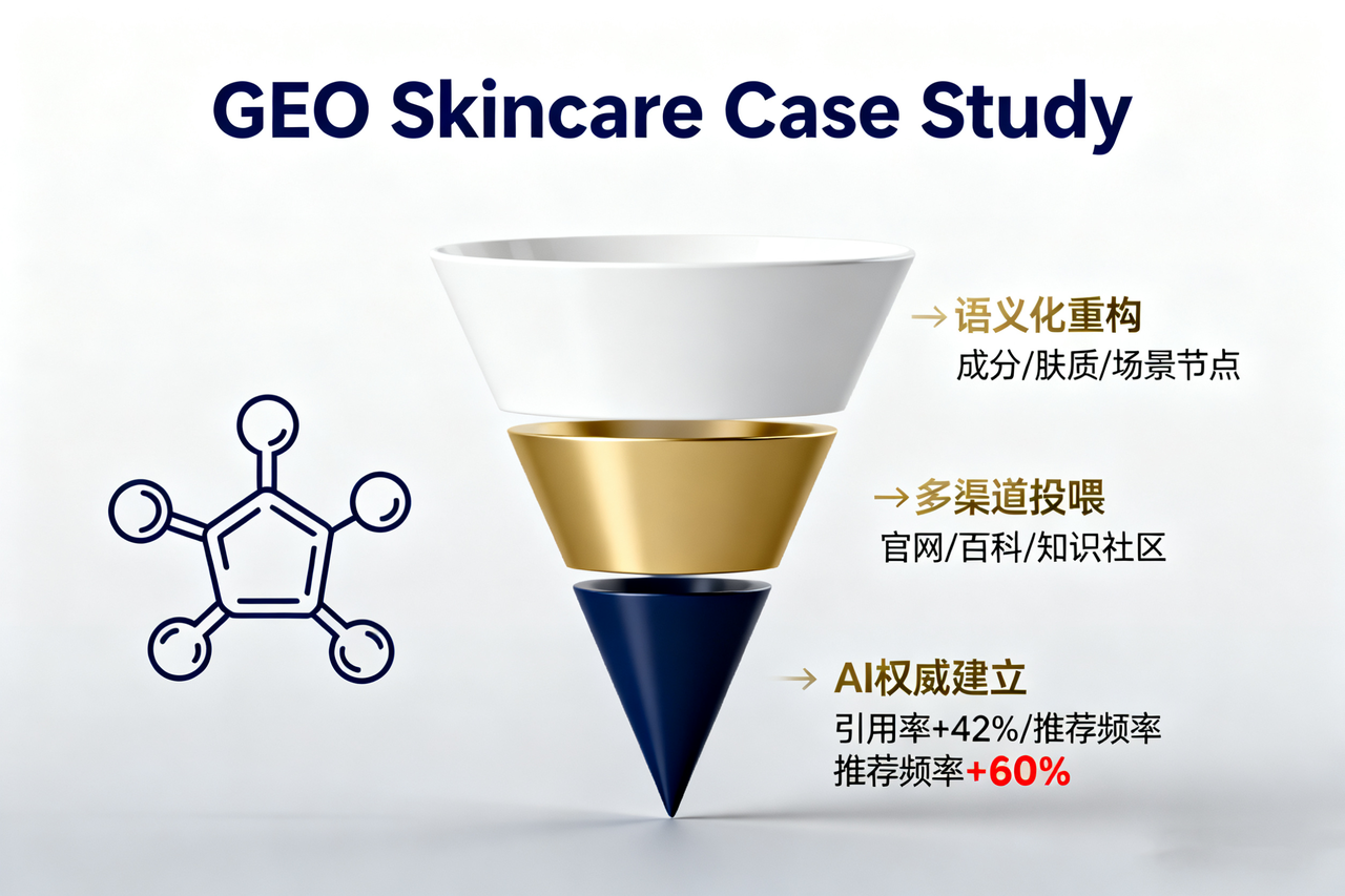 在生成式AI搜索成为主流入口的当下,美妆品牌的内容优化逻辑,正在从“为人种草”向“为AI理解”转变。GEO(生成式引擎优化)落地实践的核心,不在于制造更多内容,而在于让品牌的信息体系能够被AI模型识别、引用与复述。以下两个案例展示了这一转向的具体路径。