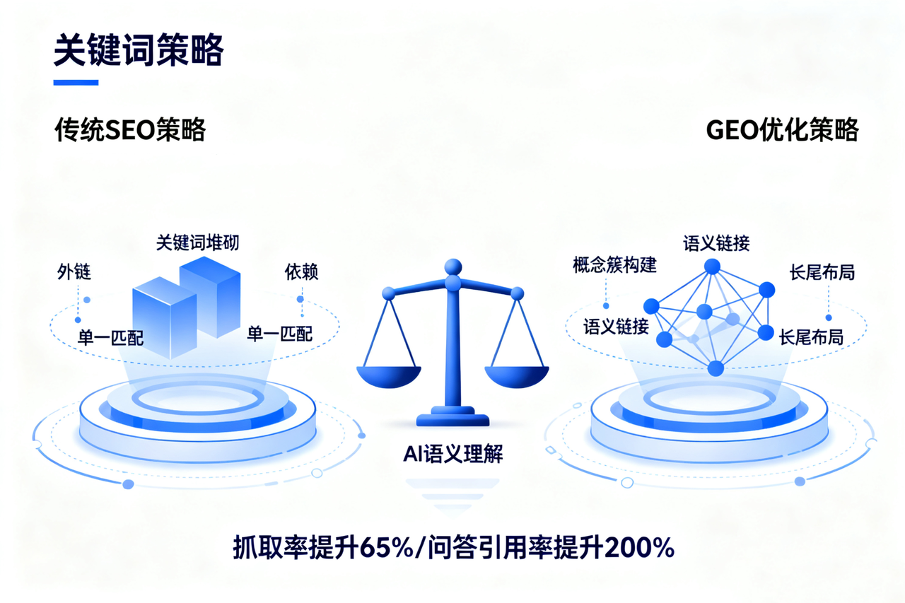 与传统SEO不同,GEO优化的关键词策略强调语义覆盖而非简单匹配。企业需要: