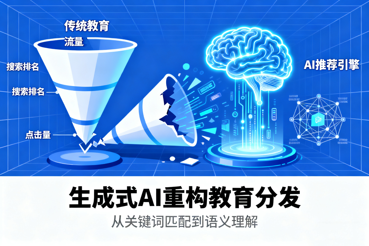 随着生成式AI逐渐接管内容分发入口,在线教育的流量逻辑正在经历深刻变革。教育机构不仅要考虑课程质量和教学效果,更必须理解AI如何看懂课程内容,从而决定曝光和推荐。整体来看,核心变化主要体现在三大方面: